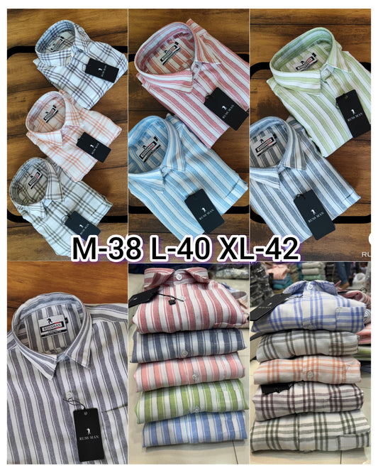 (Combo of 3)RussMan Checked+Strips Soft Korean Linen Shirt Rs.1100